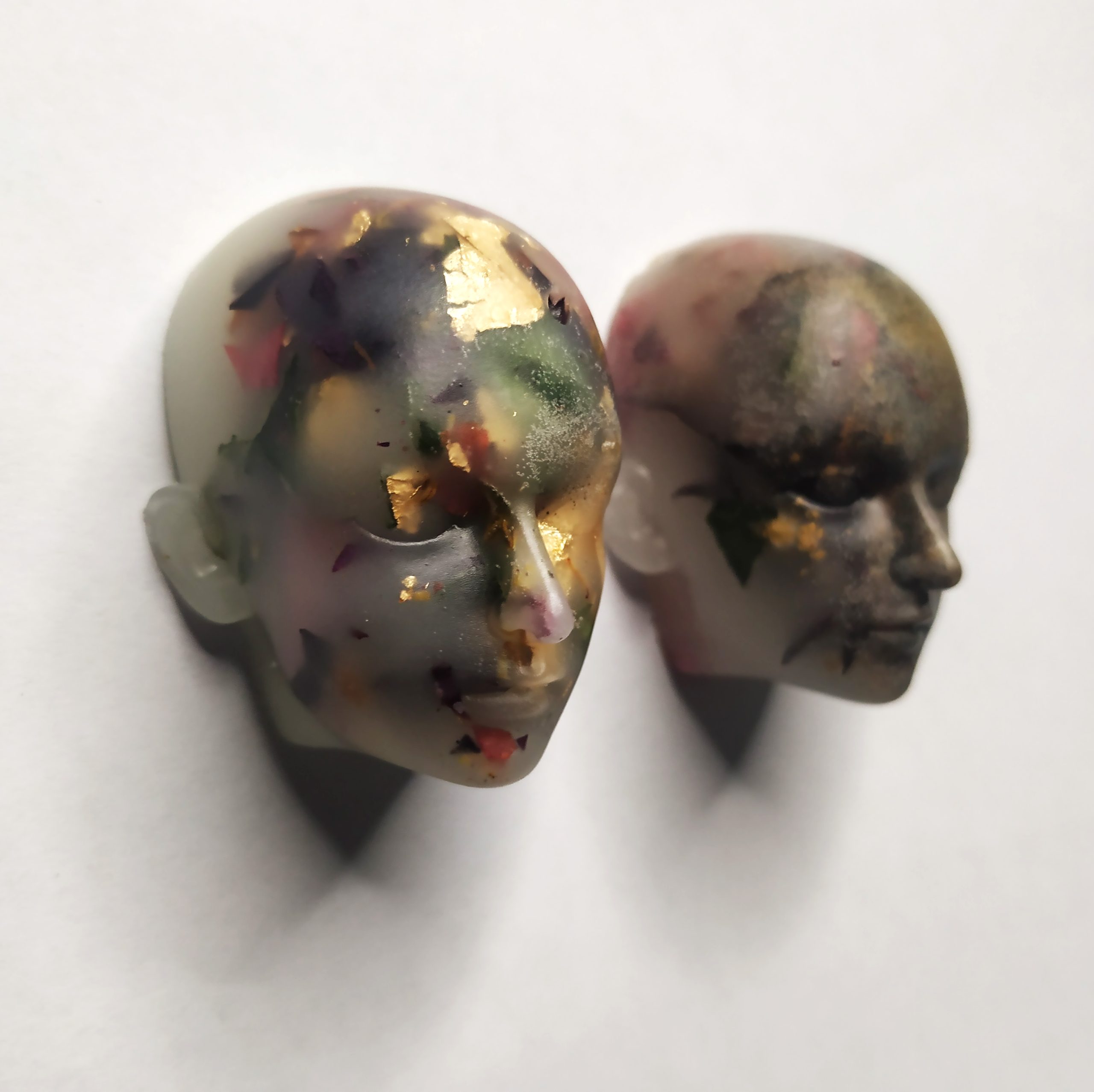 Escribir con imágenes construidas a partir de lecturas y conversaciones, retratos de melodías que buscan entre las letras y la memoria. Pequeña biblioteca de la genealogía femenina en construcción. Un proyecto donde aúno la literatura, la memoria, potenciando las diferencias veladas y desveladas. Las cabezas representan que todas somos similares pero únicas, parecidas pero no iguales, generando nuevas miradas desde referencias reales, actuales (gracias al trabajo previo de campo reuniendo voces y planteamiento desde la mirada femenina. Obra poética, sensible, pero que más allá de la belleza delicada, busca mostrar un discurso y un compromiso, donde la serie se manifiesta como una suma de voces, desde una trabajo introspectivo, pero participativo y colaborador, experimentando con los materiales, a través a de la reflexión, la creatividad y la implicación social y feminista.