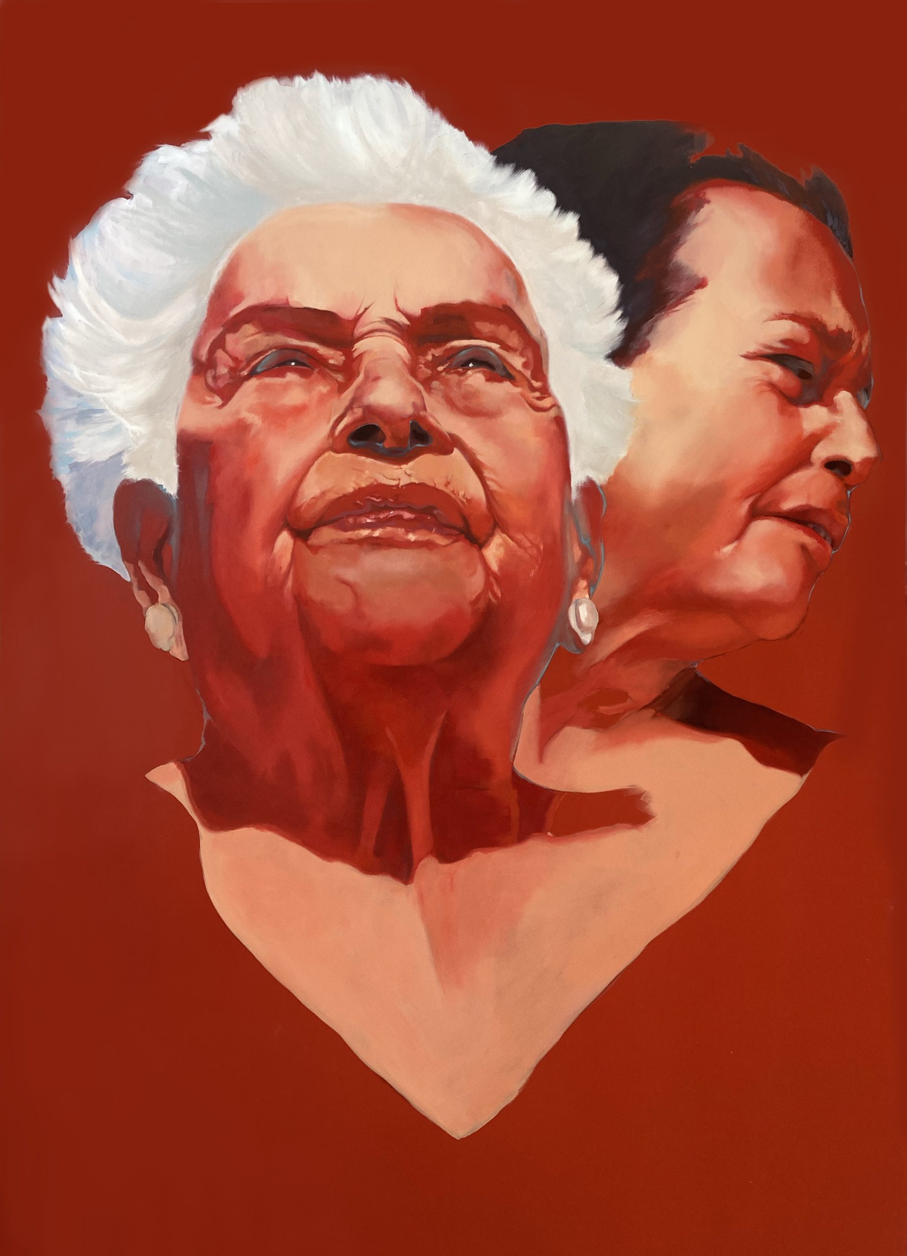 Freya Díaz Jaén. Complicidad subyacente (2023). Acrílico y óleo sobre DM, 183 x 122 cm.