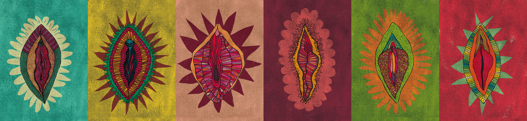Esta obra es la unión de seis ilustraciones creadas a mano y luego digitalizadas que forman parte de un proyecto más amplio que llevo desarrollando varios años. Red On es un proyecto artístico que pretende visibilizar y normalizar la imagen de la vulva y su diversidad a través de la ilustración, el humor y la serigrafía aplicada a diferentes objetos cotidianos. Este proyecto es un intento de autogestión, desde un punto de vista combativo, con la intención de acercar el arte y la imagen diversa del cuerpo a todas las personas, que invita a la reflexión sobre la normativa sociocultural y sus cánones estéticos supeditados a un estado patriarcal. Todos los productos que forman este proyecto están serigrafiados y realizados de la manera más artesanal, ecológica y responsable posible. Todas las ilustraciones y estampaciones están hechas en mi estudio de València.