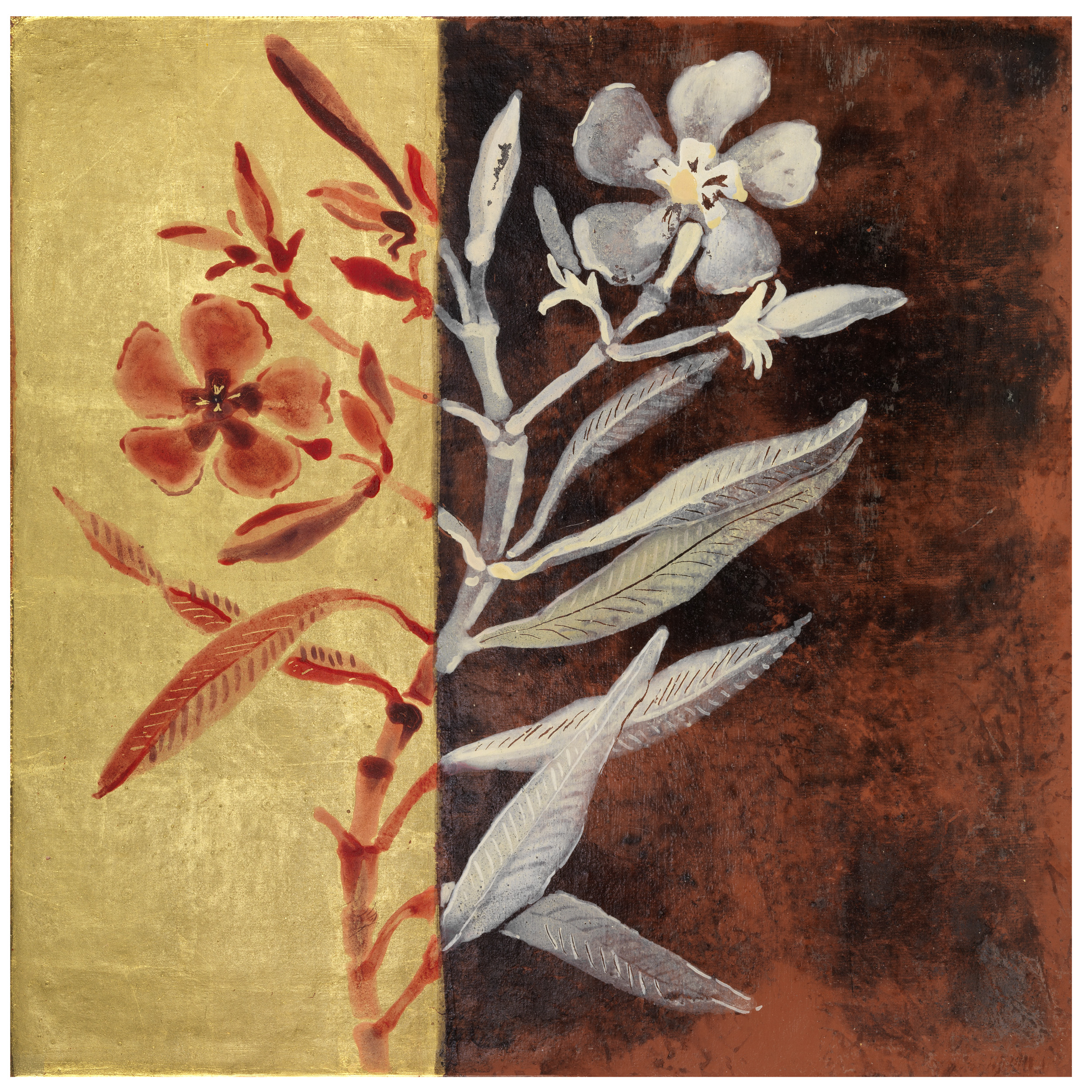 20 x 20 x 3 cm Oro fino (23,75 quilates), barro y temple al huevo sobre bastidor de madera de okume preparado con lienzo y gesso. Serie de 11 obras, esta es la 10 de 11. Fecha: 2013- 2015.